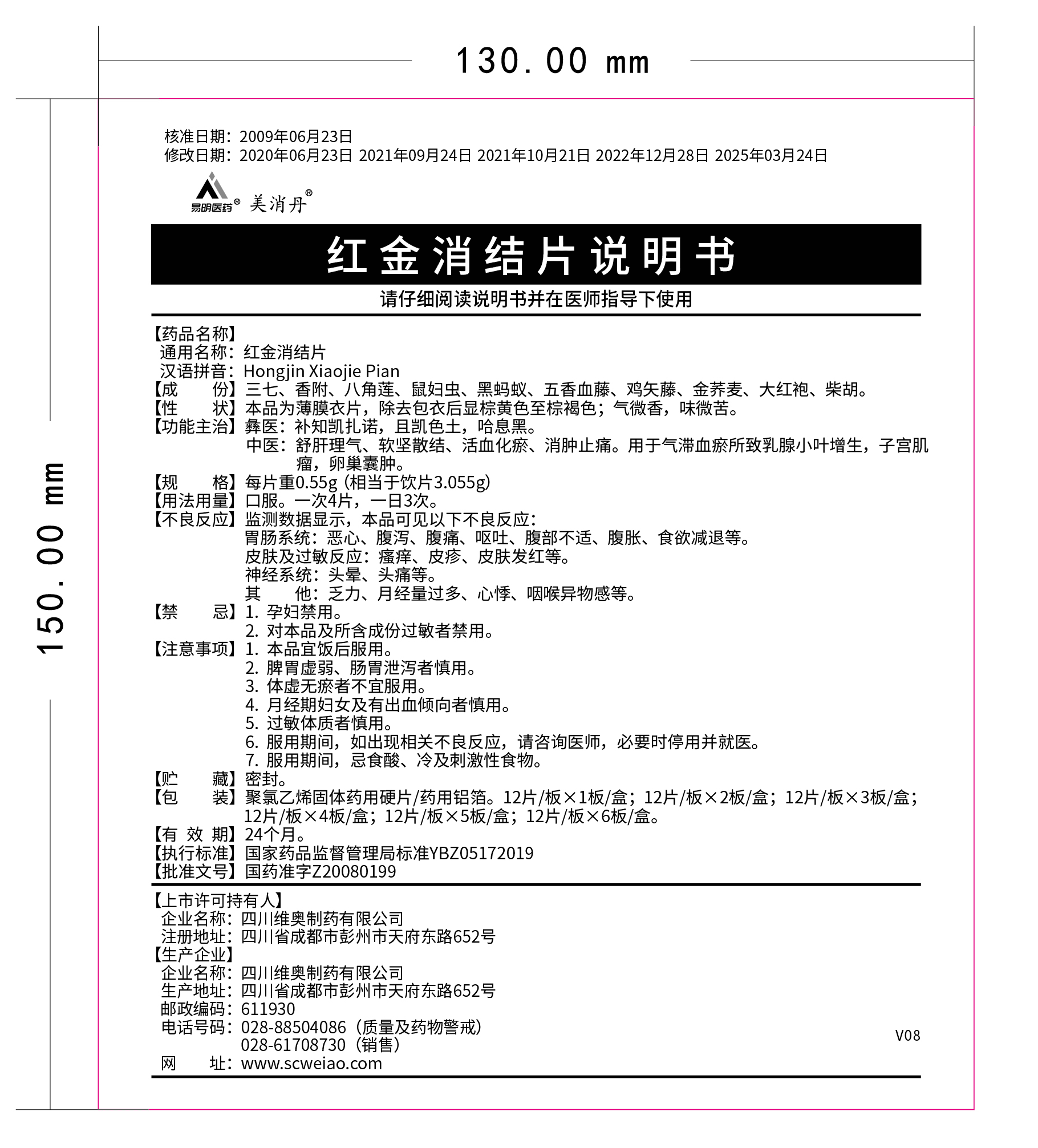 我司對(duì)紅金消結(jié)片說(shuō)明書(shū)(批準(zhǔn)文號(hào):國(guó)藥準(zhǔn)字Z20080199)進(jìn)行修訂
